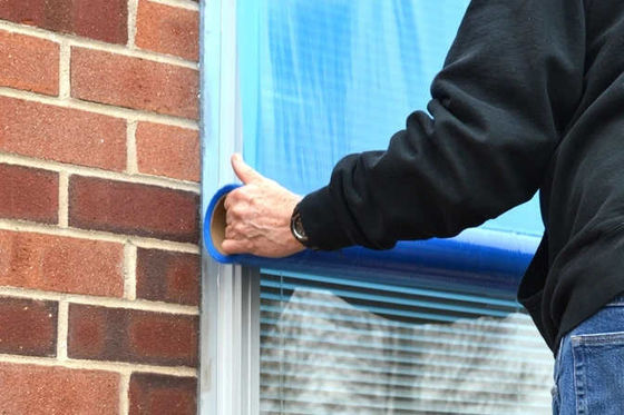 A máscara de vidro do filme poli provisório do filme da proteção da janela para pintar com esparadrapo claro não sae de nenhum resíduo. Nosso filme da janela da economia é um filme azul com uma proteção UV de 45 dias. Película protetora para o vidro de janela, uso azul do filme esparadrapo do protetor da janela dentro e fora para o vidro de máscara para a pintura. Da janela autoadesiva do filme do protetor da janela o filme de máscara protege janelas, espelhos e superfícies de alto brilho de dano e dos oversprays móveis da pintura. Cascas de máscara da janela autoadesiva do filme da proteção da janela longe da superfície. Eliminates que raspa e que risca.
