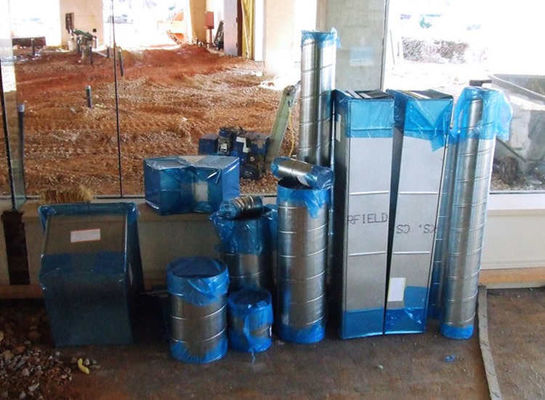 Quando você usa o filme esparadrapo azul para proteger canais, permanecem limpos no tempo que conduz à instalação e ao uso, que os meios eles canalizarão o ar puro.