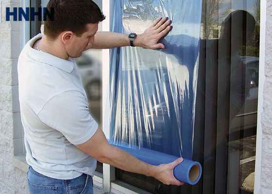 Máscara de vidro autoadesiva para janelas e o vidro de pintura. Protege contra o overspray, o resíduo do estuque, as manchas do almofariz, etc. Esta película protetora autoadesiva da janela aplica-se a todos os tipos janelas, vidro, e superfícies lisas para fornecer a proteção
