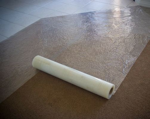 OUTROS USOS: filme da proteção da pintura, revestimento para pavimento protetor, película protetora de superfície, proteção clara da pintura, filme plástico protetor, fita da proteção do tapete, fita protetora, fita da proteção da pintura, filme autoadesivo do protetor do tapete, protetor autoadesivo do tapete, proteção da pintura, filme esparadrapo, filme de polietileno, protetor plástico pegajoso do tapete, e mais.